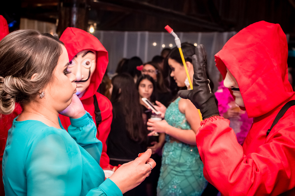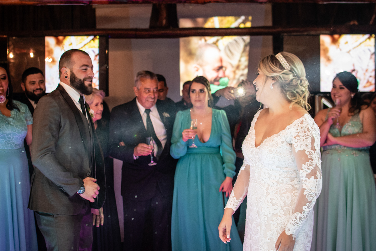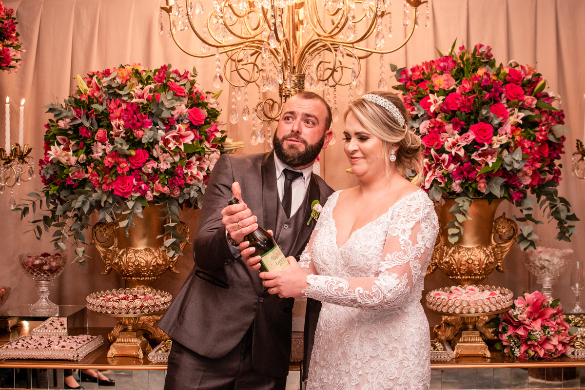 O noivo Matheus resolveu pagar uma promessa de tempos atrás, quando na época de namoro, em uma festa a noiva Flávia disse que quando eles se casassem ela gostaria de receber um buque de coxinhas, dito e feito.